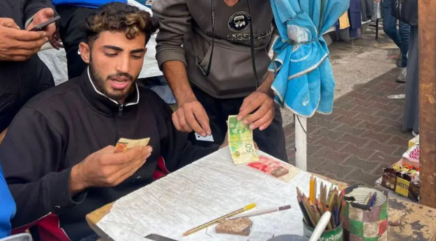 3 DE DICIEMBRE DEL 2025 – INTERNACIONAL. En un mercado bullicioso de la ciudad de Gaza, la desesperación económica ha dado lugar a oficios inesperados. Baraa Abu al-Aoun, un joven que debería estar cursando estudios universitarios, se ha convertido en un «reparador de dinero«, inspeccionando con gran dedicación billetes desgastados de 100 séqueles (la moneda oficial israelí). Con una mesa instalada al borde de la carretera y herramientas rudimentarias, Baraa cobra una pequeña suma para alisar billetes, realzar su color con lápices y asegurar que puedan seguir circulando. Este nuevo negocio en auge es un reflejo de la profunda crisis de liquidez.