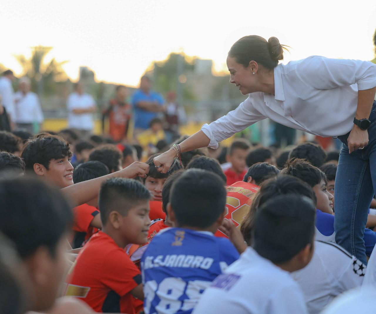 26 NOVIEMBRE 2025-CANCUN, BENITO JUAREZ- La presidenta municipal Ana Paty Peralta encabezó la inauguración de un nuevo espacio deportivo en Cancún, al entregar oficialmente la cancha de pasto en la Supermanzana 221, un proyecto que forma parte de la estrategia municipal para rehabilitar nueve campos en distintos puntos de la ciudad. Estas acciones buscan reforzar las oportunidades de convivencia y desarrollo social entre niñas, niños, jóvenes y familias que diariamente utilizan las instalaciones deportivas. Según el Ayuntamiento, más de 100 mil deportistas serán beneficiados con estas obras, que se suman al esfuerzo por transformar los entornos comunitarios mediante infraestructura segura y de calidad.