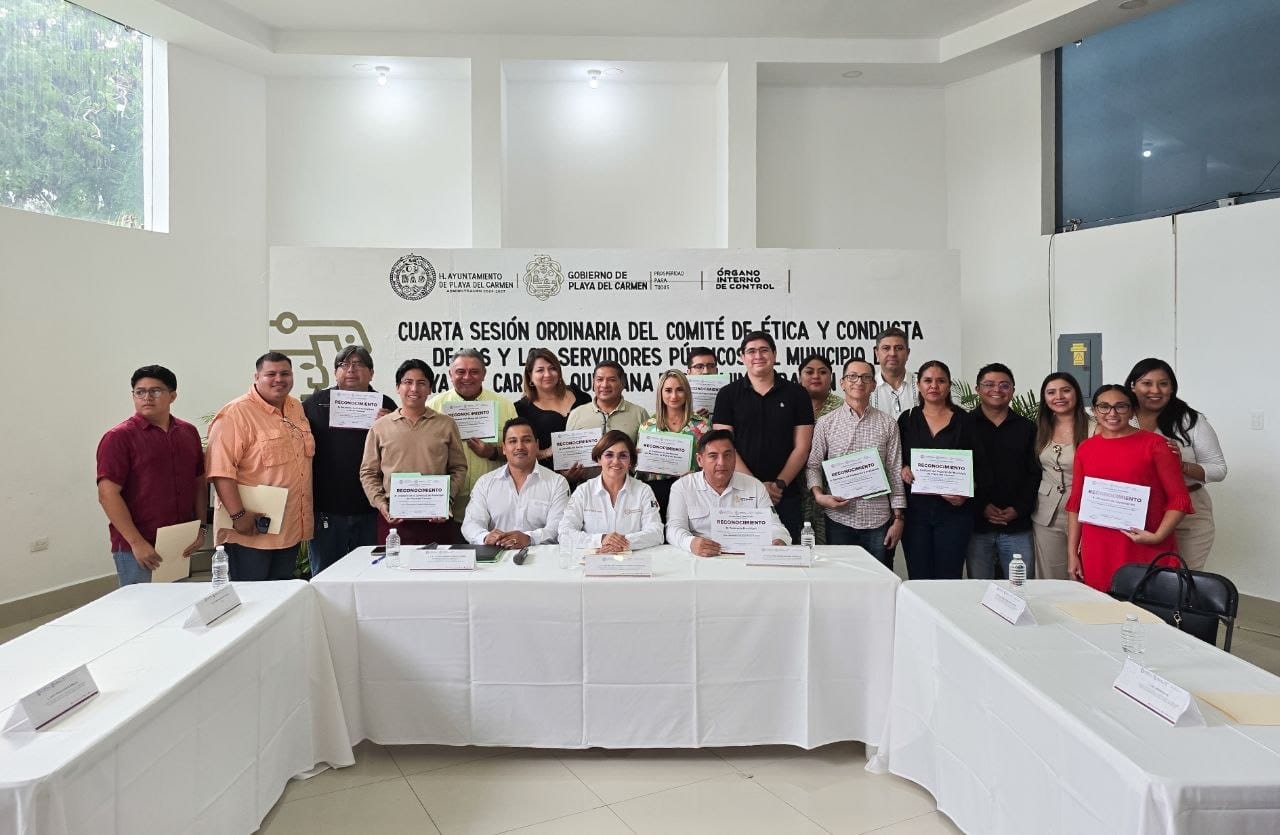 Como parte de esta estrategia, el Comité de Ética y Conducta de las y los Servidores Públicos de Playa del Carmen, presidido por Cristina Alcérreca Manzanero, titular del Órgano Interno de Control, dio a conocer los resultados alcanzados durante la cuarta sesión ordinaria celebrada en el Salón Oval del Nuevo Palacio Municipal. En el encuentro se reafirmó el compromiso institucional con la ética e integridad en el servicio público.