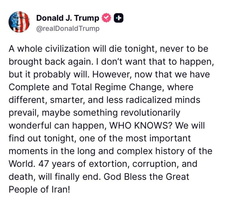 La retórica del republicano, quién aseguró hoy que “esta noche morirá toda una civilización, para no volver jamás“, en referencia a Irán, también ha desatado una ola de condenas entre la oposición demócrata.