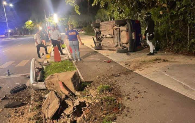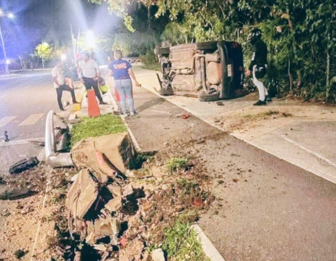 La imprudencia al volante y el incumplimiento de los límites de velocidad derivaron en un impactante accidente la noche de este lunes 23 de marzo en Chetumal. Un automóvil particular terminó volcado a un costado de la cinta asfáltica tras perder el control en una de las curvas del emblemático Bulevar Bahía. A pesar de lo aparatoso del siniestro, donde la unidad quedó recostada sobre uno de sus flancos, las autoridades de rescate confirmaron que no hubo personas lesionadas, quedando el evento únicamente en cuantiosos daños materiales y una intensa movilización de los cuerpos de seguridad.