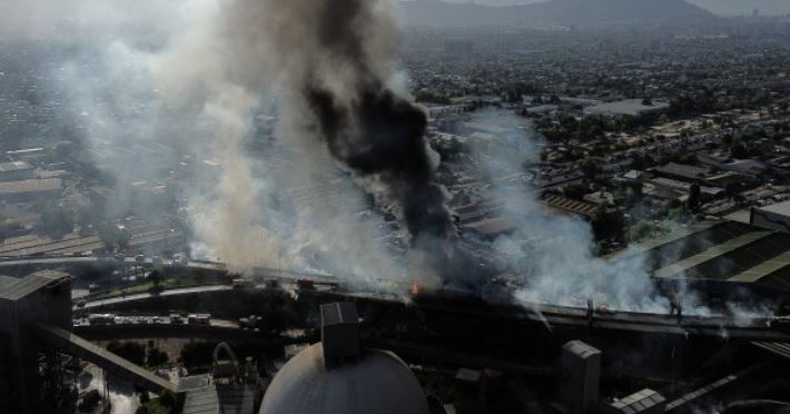 De acuerdo con Transporte Informa de la Región Metropolitana, el hecho ocurrió a las 08:22 horas. Bomberos detalló que voluntarios trabajan en el combate del siniestro en la esquina de Los Atacameños con Avenida Fresia, y en Camino Lo Ruiz con Avenida Eduardo Frei Montalva, donde la estructura afectada alcanza hasta tres pisos.