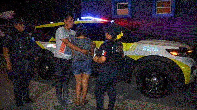 Tras el reporte al número de emergencias 9-1-1, elementos de la policía municipal desplegaron un operativo en la Región 249, logrando ubicar a la mujer en el estacionamiento de una plaza comercial, donde se encontraba en crisis nerviosa y bajo presión constante de los delincuentes vía telefónica.