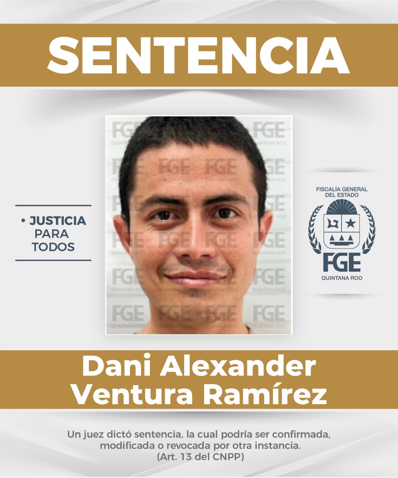 Durante el proceso se acreditó que Dani Alexander Ventura Ramírez formaba parte de un grupo criminal generador de violencia en el municipio de Tulum. Por estos hechos, el juez le impuso una sentencia de 35 años y seis meses de prisión, además del pago de una multa por 233 mil 425 pesos, como parte de las sanciones derivadas del homicidio calificado en Quintana Roo.