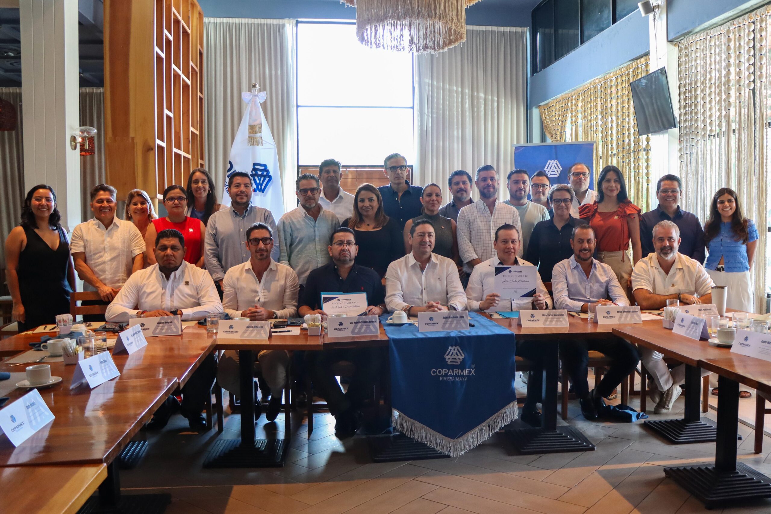 31 de Octubre del 2025.- El secretario de Seguridad Ciudadana de Playa del Carmen, Carlos Montesinos García, sostuvo un importante encuentro con el sector empresarial del municipio. El funcionario participó en la Reunión de Socios de la Coparmex Riviera Maya, organización que actualmente dirige Sugeiry Prieto Torres. Montesinos García acudió a esta cita en representación de la presidenta municipal, Estefanía Mercado, para exponer los avances en la materia.