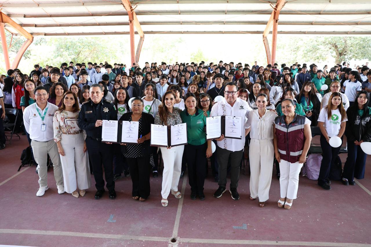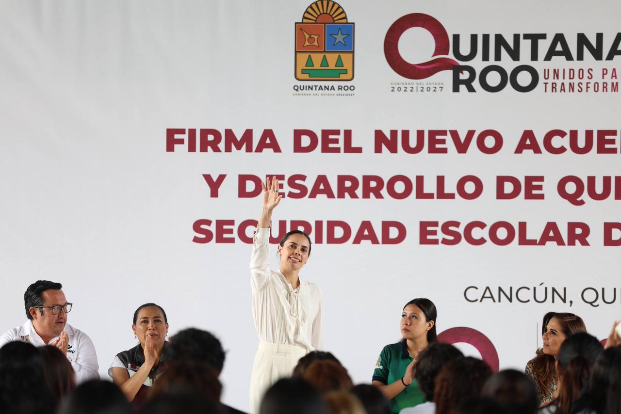 26 de Febrero del 2026.- La Presidenta Municipal de Benito Juárez, Ana Paty Peralta, participó como testigo de honor en la firma del Nuevo Acuerdo por el Bienestar y Desarrollo de Quintana Roo. Este importante evento, encabezado por la gobernadora Mara Lezama, tiene como meta principal reforzar la seguridad en las escuelas de todo el estado, comenzando con el sistema CONALEP. Gracias a esta alianza, se implementarán protocolos avanzados para actuar rápido ante cualquier emergencia o situación de riesgo que pueda presentarse dentro o fuera de las aulas.