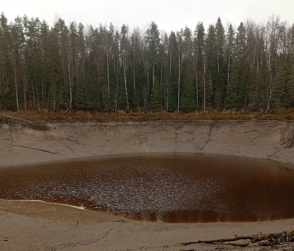 El lago Shimózero, con una extensión aproximada de ocho kilómetros cuadrados, se encuentra en la frontera entre las provincias de Leningrado y Vólogda. Forma parte de un grupo de lagos kársticos intermitentes, que se vacían de forma natural a través de sumideros y filtraciones subterráneas, un proceso que no ocurre necesariamente cada año.