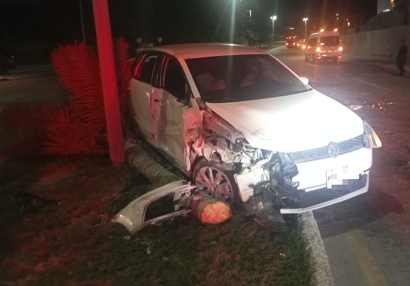 30 de Octubre del 2025.- Un aparatoso accidente vehicular se registró durante las últimas horas de este jueves en una de las arterias más importantes y transitadas de Cancún. Los hechos ocurrieron en plena Zona Hotelera, cuando un vehículo particular perdió el control y terminó impactándose violentamente contra la infraestructura del camellón central. El incidente provocó la movilización de los cuerpos de emergencia y de las autoridades de tránsito, quienes acudieron al lugar para atender la situación.