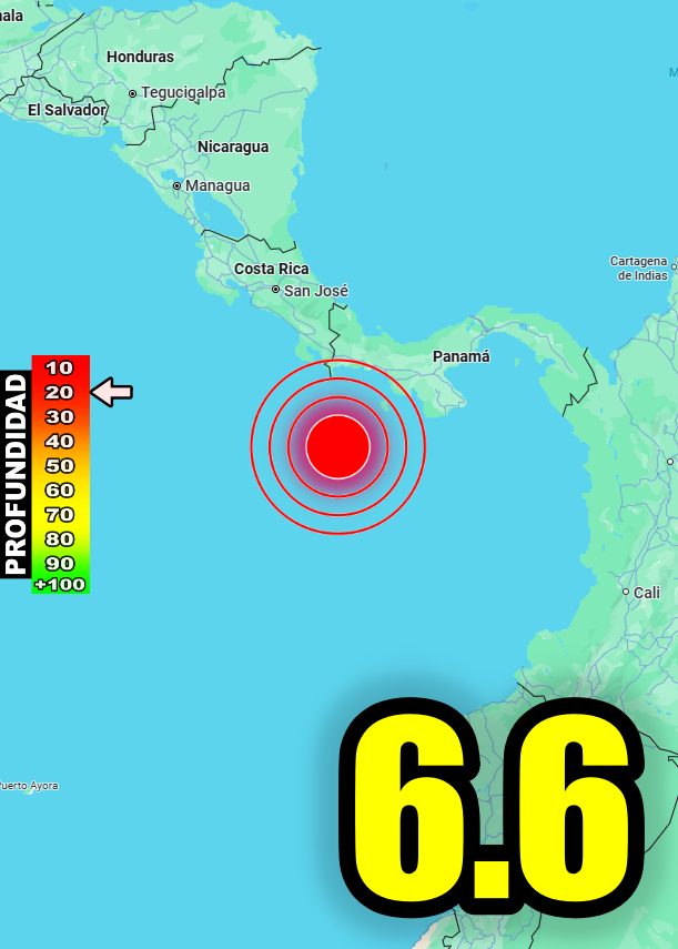 El epicentro del sismo se ubicó en el océano Pacífico, a unos 206 kilómetros al sur de la península de Burica, una zona marítima cercana a la frontera con Costa Rica. Además, el informe detalló que el temblor se originó a una profundidad de 10 kilómetros, lo que lo convierte en un evento relativamente superficial y por tanto más perceptible.