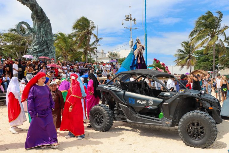 Playa del Carmen, Quintana Roo.– Como parte de las acciones impulsadas por el Gobierno de Playa del Carmen que encabeza la presidenta municipal Estefanía Mercado, la Secretaría de Seguridad Ciudadana desplegó un operativo de vigilancia y apoyo en playas, zonas turísticas y durante las representaciones del Vía Crucis realizadas este Viernes Santo, en el marco del Plan de Acción Semana Santa 2026.