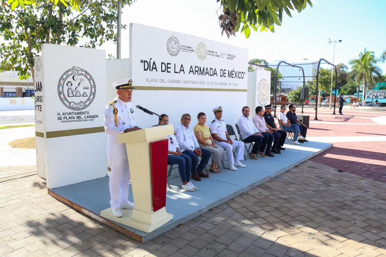 El mensaje central de la ceremonia fue dado por el Capitán de Navío Pedro Mata Cervantes, representante del Contralmirante José Alberto Rodríguez Cuevas, Comandante de la Zona Naval de Cozumel. El Capitán Mata Cervantes agradeció el homenaje del Gobierno Municipal, enfatizando el profundo vínculo histórico que Playa del Carmen, como ciudad con una marcada vocación marítima, mantiene con esta conmemoración dedicada a quienes protegen las costas y mares del país.
