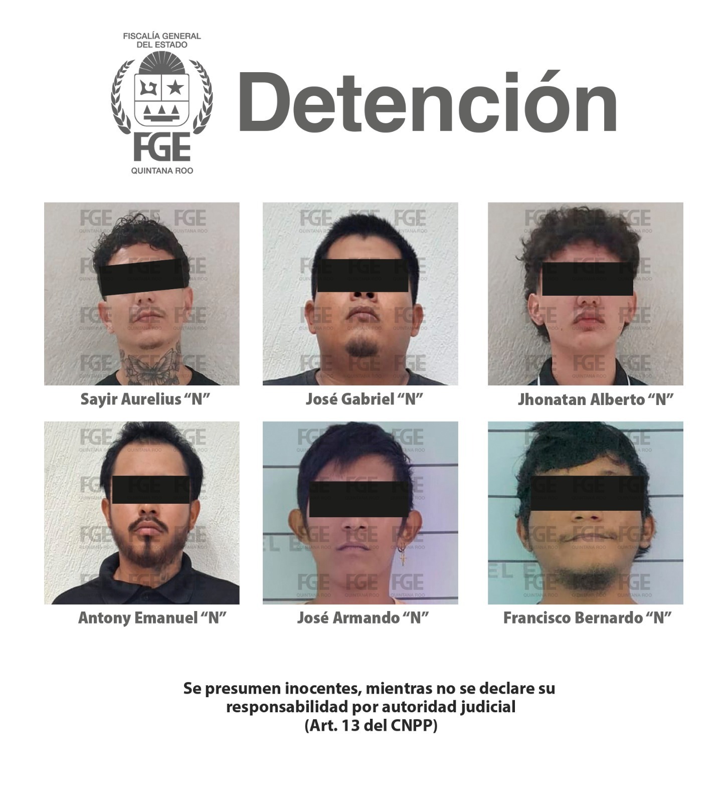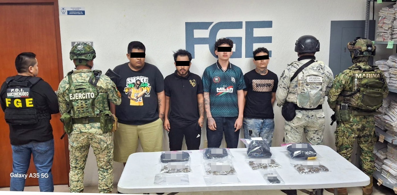 En las inmediaciones de este mismo domicilio cateado en Puerto Morelos, las autoridades detectaron a cuatro hombres en actitud sospechosa intercambiando bolsitas en la vía pública, una conducta típica del narcomenudeo. Al realizarles una revisión preventiva, se les encontró en posesión de más dosis de hierba verde, por lo que fueron detenidos de inmediato. Los sujetos fueron identificados como Jhonatan Alberto “N”, José Gabriel “N”, Antony Emanuel “N” y Sayir Aurelius “N”, quienes ahora enfrentan cargos por su probable participación en delitos contra la salud.