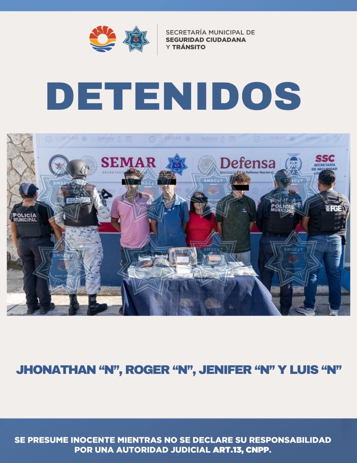 13 DE OCTUBRE DEL 2025 – LOCALES. Un importante golpe a la distribución de drogas en Cancún se registró el 13 de octubre de 2025, con la detención de cuatro personas en la Región 216. Tres hombres y una mujer fueron asegurados por su presunta participación en delitos contra la salud, específicamente en la modalidad de narcomenudeo. Esta detención masiva es resultado directo de la intensa coordinación entre la Guardia Nacional, la Fiscalía General del Estado (FGE) y la Secretaría Municipal de Seguridad Ciudadana y Tránsito (SMSCyT) de Benito Juárez.