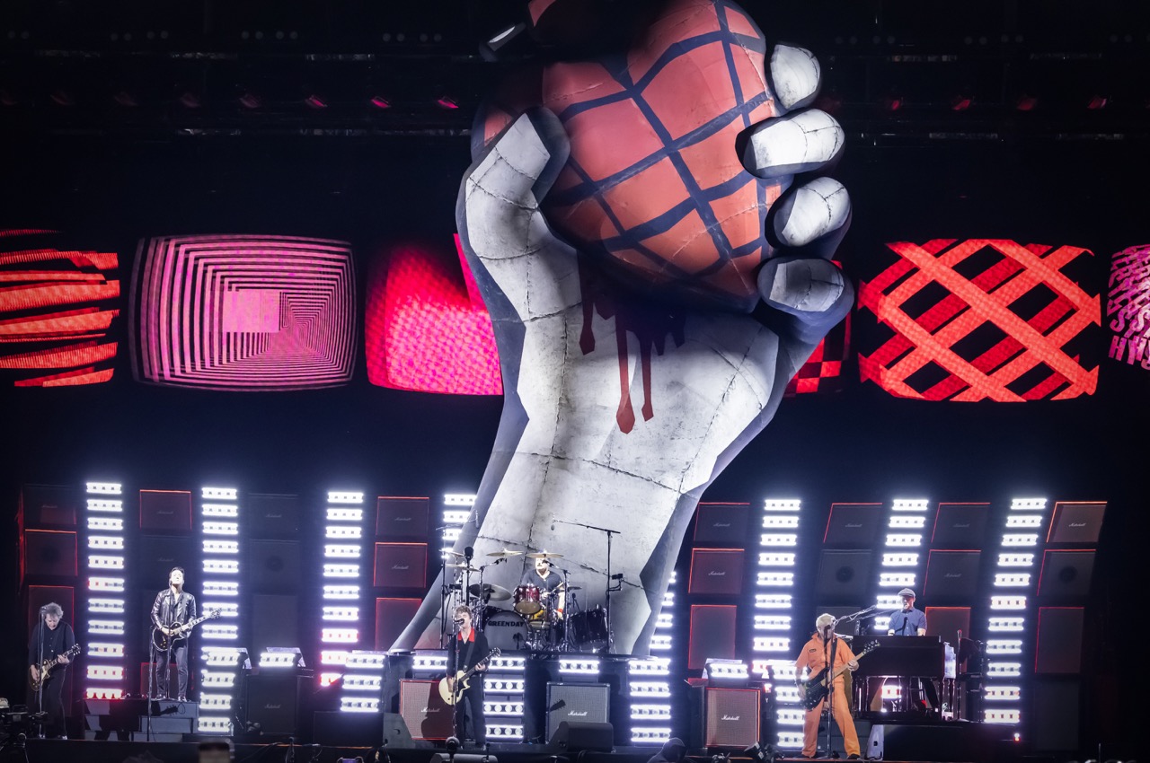 Sabes que la cosa se pondrá épica cuando por un momento, un globo o alguna especie de estructura aparece en el escenario con la forma de la mano sosteniendo el corazón-granada de la portada de disco. Detallazo de la banda que decidió traerse buena parte de su escenario de gira.