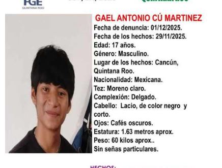 La Fiscalía General del Estado confirmó durante la madrugada de este martes que el cuerpo localizado en la supermanzana 260 corresponde a Gael Antonio, un joven de 17 años reportado como desaparecido desde el fin de semana. El hallazgo se realizó en la prolongación de la avenida 20 de Noviembre, donde una llamada anónima al 911 alertó sobre varias bolsas abandonadas junto al camino. Tras el reporte, policías municipales acudieron al sitio y notificaron a las autoridades ministeriales.