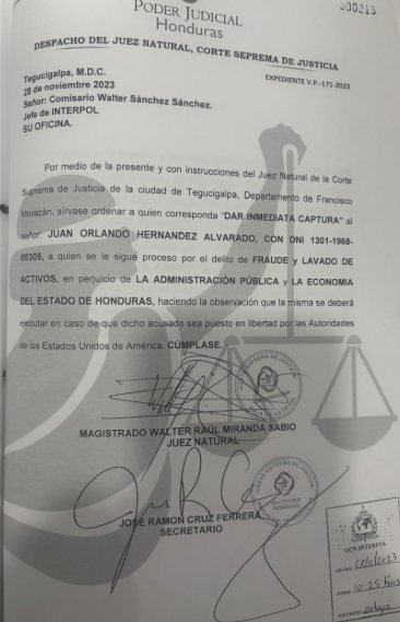 Los presuntos delitos que motivan la Captura de Juan Orlando Hernández en su país están ligados a un millonario desvío de fondos estatales. Según el fiscal general, Zelaya, estos recursos fueron desviados para financiar la campaña política del expresidente en 2013, un caso de corrupción que salpicó a exfuncionarios, exdiputados, empresarios y particulares. Zelaya fue enfático al señalar en la red social X: «Hemos sido lacerados por los tentáculos de la corrupción y por las redes criminales que han marcado profundamente la vida de nuestro país». Esta primera línea de investigación ya ha resultado en la captura de la exdirectora de la Dirección de Niñes, Adolescencia y Familia (DINAFA), Dulce María Villanueva Sánchez.