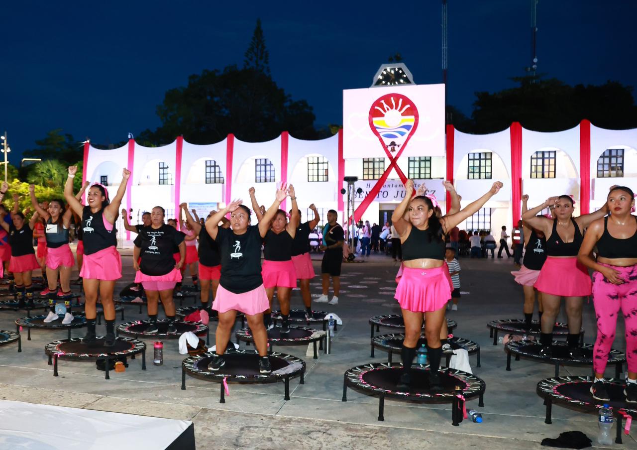 El evento estuvo lleno de emoción, con actividades que combinaron salud, arte y comunidad. La academia Acadanz impartió una clase de jumping, mientras que Yuleny Velásquez Ruiz, sobreviviente de cáncer de mama, compartió su testimonio, conmoviendo al público con un mensaje de fortaleza. Siete mujeres de la Fundación Lazos de Vida participaron en el tradicional toque de la “Campana de la Esperanza”, recordando que cada historia de vida cuenta. Además, se proyectó el video mapping Pink Power, una muestra artística que resaltó la solidaridad cancunense.