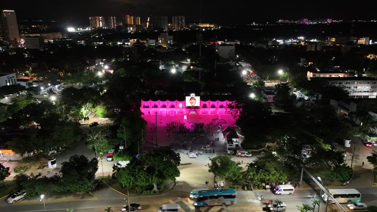 Uno de los momentos más significativos de la noche fue el encendido rosa del Palacio Municipal, que iluminó el cielo de Cancún como un símbolo de lucha, esperanza y unión. La fachada se convirtió en un recordatorio visible del compromiso social y de la importancia de cuidar la salud de todas las mujeres. Este gesto, además de representar la causa, busca generar conciencia entre las familias sobre la relevancia de la autoexploración y los chequeos médicos regulares.