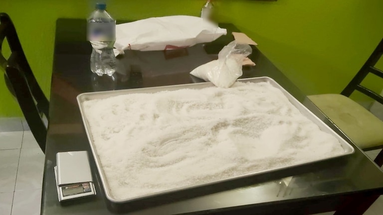 Una vez asegurados los sospechosos, las autoridades procedieron a realizar una inspección del inmueble donde intentaron guarecerse. Como resultado de esta revisión, los uniformados localizaron 13 envoltorios que contenían hierba verde con las características propias de la marihuana. El hallazgo más significativo fue una charola de metal que sostenía aproximadamente 10 kilogramos de una sustancia en polvo, identificada preliminarmente como cristal, lo que evidencia la grave problemática de la metanfetamina en Edomex y las grandes cantidades que se distribuyen.