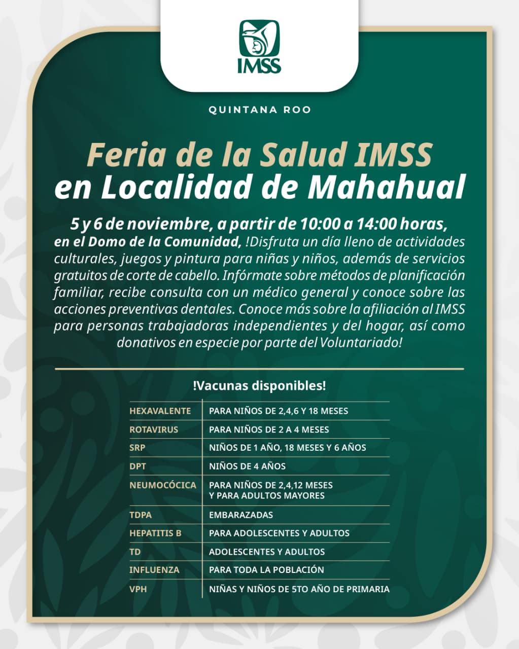 IMSS Lleva Gran Feria al Domo de Mahahual