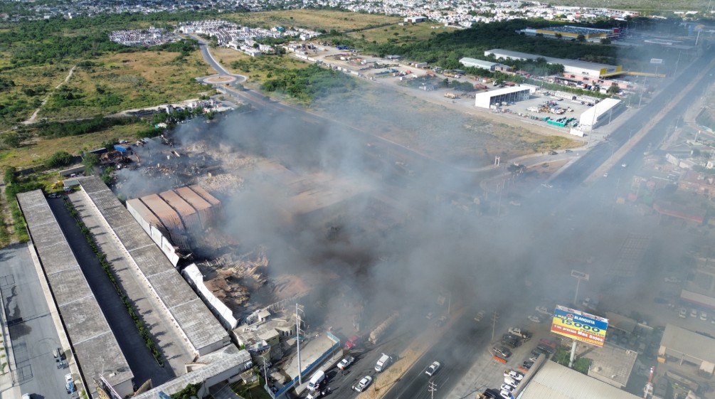 6 AGOSTO 2025- NACIONAL-Durante la madrugada de este martes, un incendio en una recicladora ubicada en el kilómetro 203.6 de la carretera Reynosa–Monterrey, a la altura de la colonia Esfuerzo Nacional, generó una fuerte movilización de cuerpos de emergencia en Reynosa, Tamaulipas. El siniestro, reportado desde las 5 de la mañana, produjo una columna de humo tóxico que se extendió hacia varias colonias cercanas, lo que obligó a las autoridades a activar protocolos de evacuación preventiva en zonas residenciales.