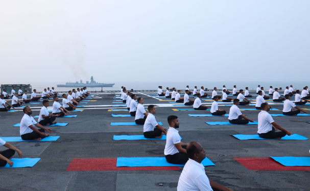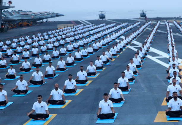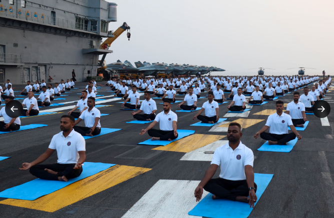 Durante el evento, soldados y marinos participaron en una masiva sesión de yoga sobre la cubierta del navío, mientras el mandatario compartía imágenes en su cuenta oficial de X (antes Twitter). En ellas se aprecia al personal naval practicando posturas frente al mar, bajo el lema de bienestar físico y mental. “Que el yoga siga uniéndonos”, escribió Modi, reforzando el mensaje de paz interior y fortaleza colectiva.
