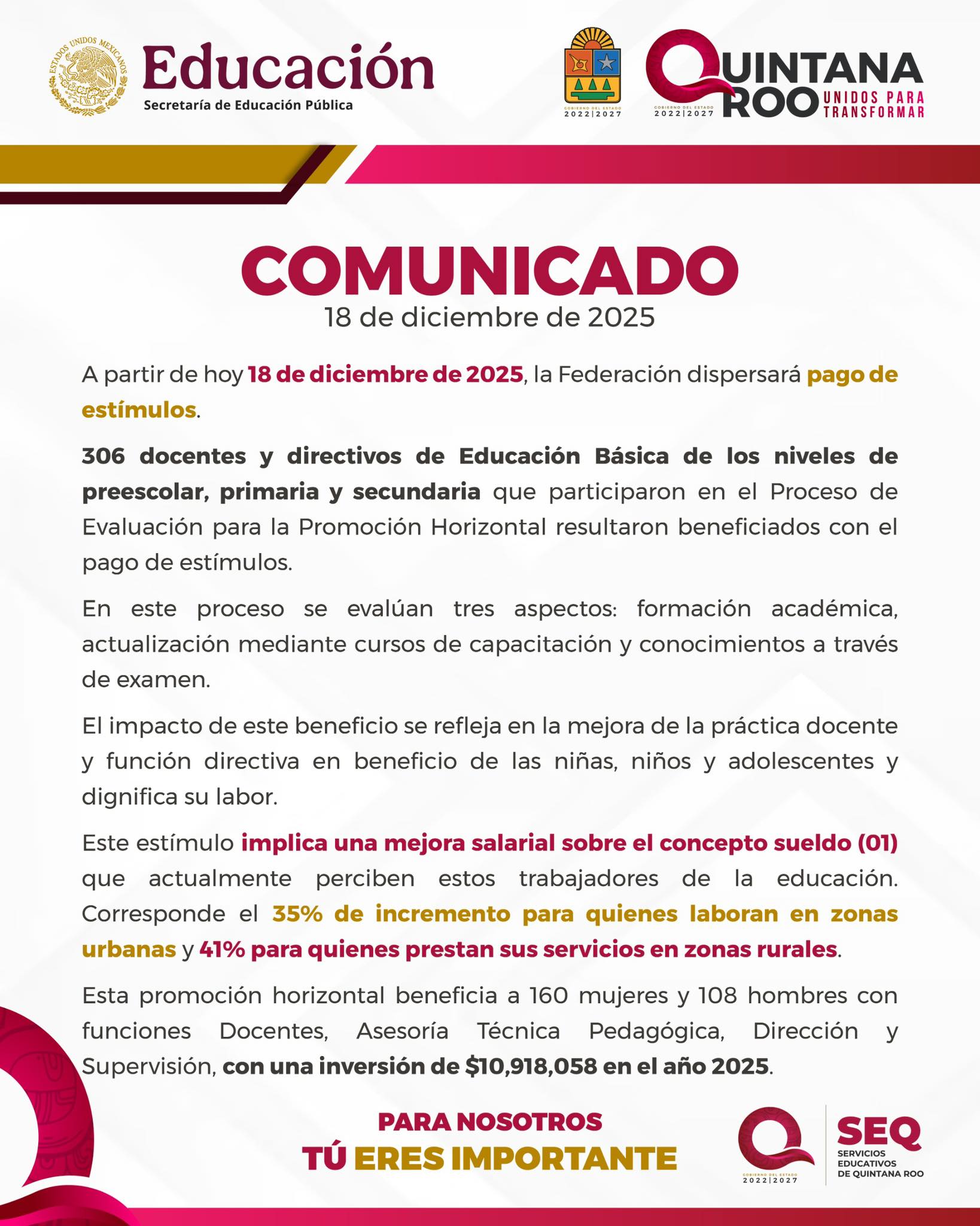 La llegada de estos pagos representa un alivio financiero y un motivador profesional para los 306 docentes seleccionados en esta etapa. Al fortalecer el ingreso de los maestros a través de la Promoción Horizontal para educación básica, el sistema educativo asegura que los mejores perfiles se mantengan motivados y comprometidos con la enseñanza. Un docente bien remunerado y reconocido tiene un impacto positivo directo en el aprovechamiento escolar de sus alumnos y en el ambiente de trabajo dentro de las escuelas.