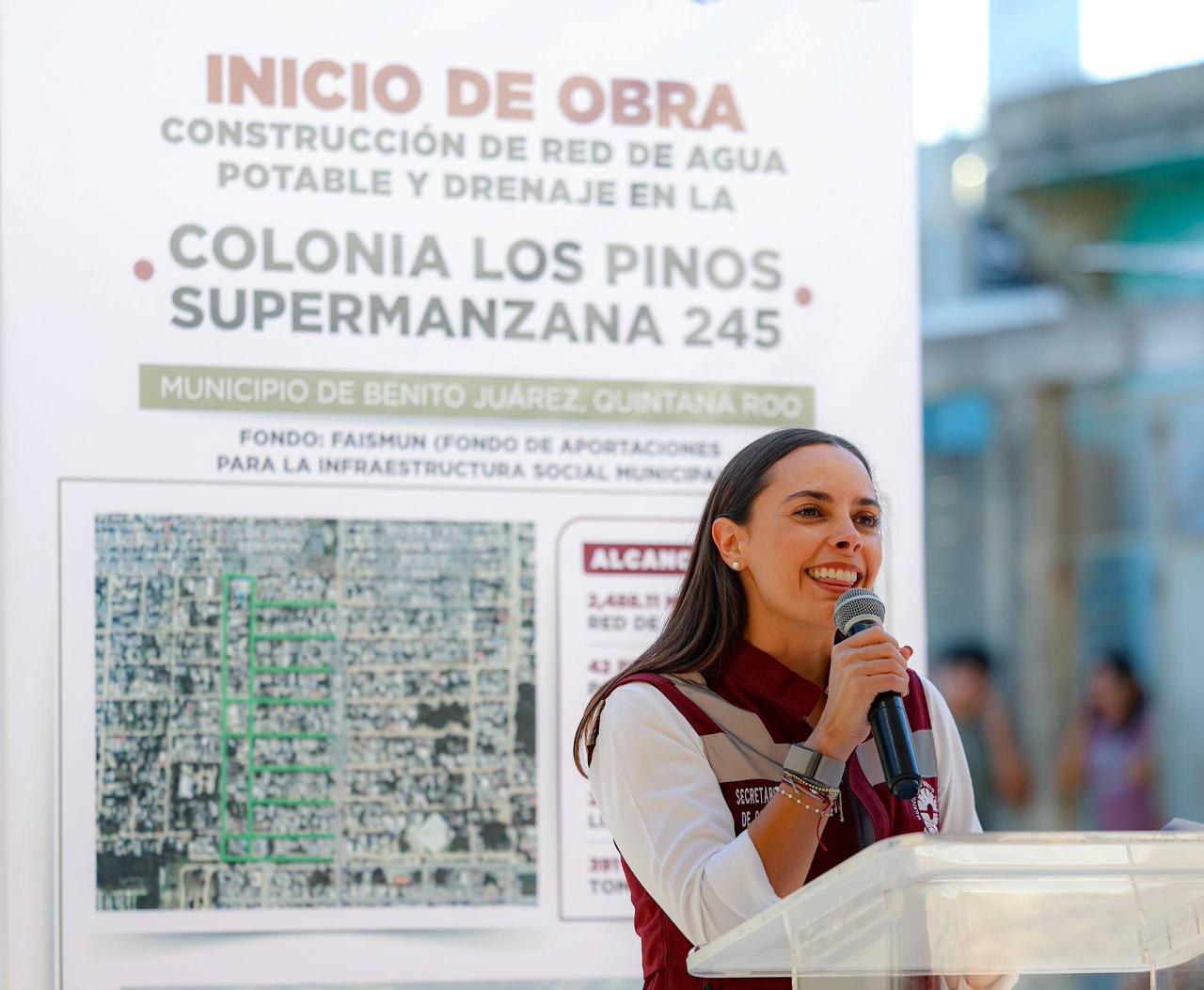 Cancún, Q. Roo, a 04 de noviembre de 2025. – La transformación de Cancún avanza con hechos concretos. La presidenta municipal, Ana Paty Peralta, y la gobernadora, Mara Lezama, dieron el banderazo de inicio a las obras de construcción de la red de agua potable y drenaje en la colonia “Los Pinos”, ubicada en la Supermanzana 245. Esta acción representa el cumplimiento de un compromiso largamente esperado por las familias de la zona, que por más de 25 años vivieron sin acceso a servicios básicos esenciales. La inversión, que supera los 36 millones de pesos, busca llevar bienestar y justicia social a esta comunidad.
