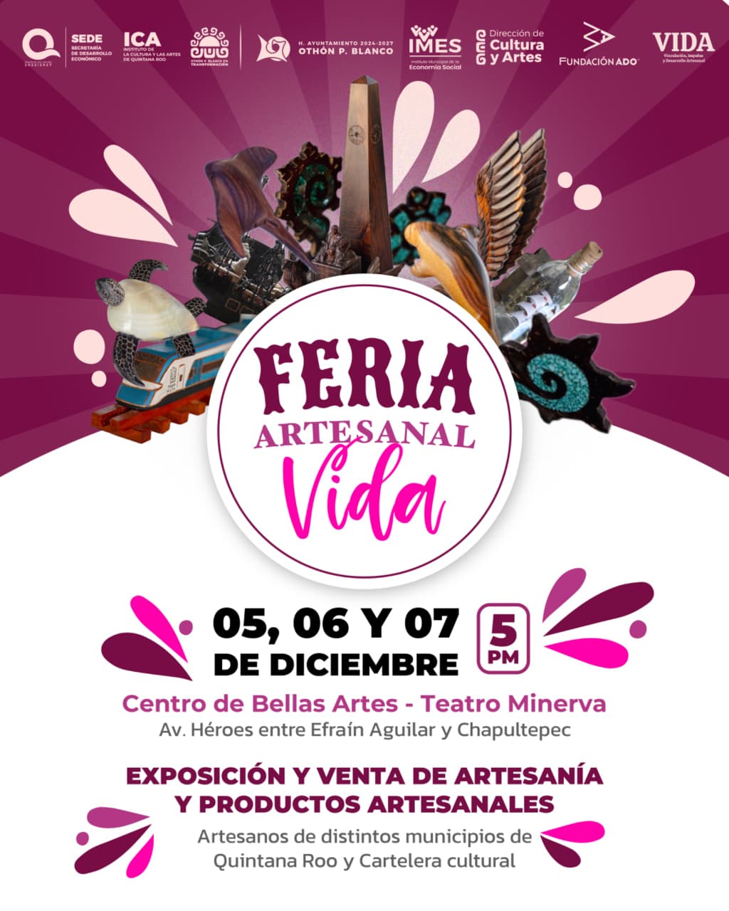 4 de Diciembre del 2025.- El Ayuntamiento de Othón P. Blanco ha lanzado una cordial invitación a toda la ciudadanía para asistir a la próxima edición de la Feria Artesanal impulsada por el programa VIDA. Este evento, organizado a través del Instituto Municipal de la Economía Social (IMES), tiene como objetivo principal fortalecer el comercio local y brindar un espacio digno para los creadores de la región. La cita para disfrutar de esta exposición será en las instalaciones del Centro de Bellas Artes, específicamente en el Teatro Minerva de la capital del estado, durante un fin de semana lleno de actividades para todos.