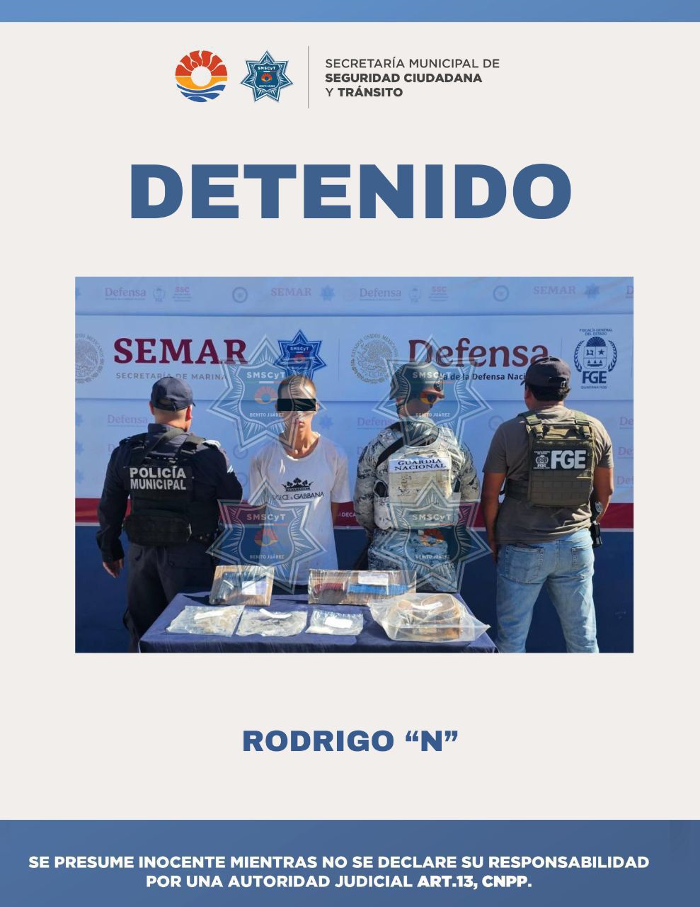 9 DE OCTUBRE DEL 2025 – LOCAL. Un nuevo golpe a la distribución de drogas se registró en Cancún con la detención de un joven de 19 años. La Secretaría Municipal de Seguridad Ciudadana y Tránsito (SMSCyT) de Benito Juárez, en conjunto con la Fiscalía General del Estado (FGE) y la Guardia Nacional, lograron asegurar a este presunto narcomenudista durante un operativo de vigilancia. La acción interinstitucional se da en el marco del programa «Blindaje Cancún», que busca fortalecer la seguridad y la prevención del delito en zonas estratégicas de la ciudad.