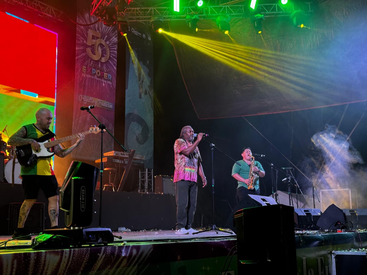 El domingo no se quedó atrás en cuanto a entretenimiento, manteniendo la energía alta hasta el cierre. La noche culminó con un gran espectáculo de sabor caribeño. Las bandas Gilharry’s 7 y Kingston Reggae Band se encargaron de inyectar ritmo reggae a la velada. Además, el grupo Sabor y Son, con su estilo inconfundible, puso a bailar a todo el público, consolidando a la Expofer como un punto de encuentro para la música y la tradición de la Frontera Sur.