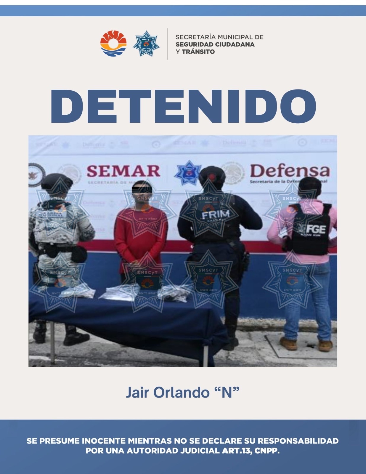 Por todo lo anterior, el sujeto fue detenido formalmente en el lugar de los hechos. El individuo fue identificado como Jair Orlando “N”, de tan solo 19 años de edad. Tras su captura, fue trasladado a las instalaciones de la Secretaría de Seguridad Ciudadana para su certificación médica. Posteriormente, el detenido y toda la droga asegurada fueron puestos a disposición de la Fiscalía General del Estado. Será esta instancia la que inicie la carpeta de investigación correspondiente y defina la situación legal del joven.