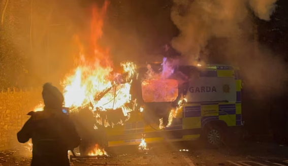 22 OCTUBRE 2025-INTERNACIONAL-La tensión volvió a estallar en las calles de Dublín luego de que un grupo de manifestantes antinmigrantes incendiara una furgoneta policial y atacara a agentes de seguridad cerca de un edificio que alberga a solicitantes de asilo. El violento episodio ocurrió apenas un día después de que un hombre fuera arrestado por un ataque contra una joven en las inmediaciones del inmueble, un hecho que ha reavivado el debate sobre la inmigración y la seguridad en Irlanda.