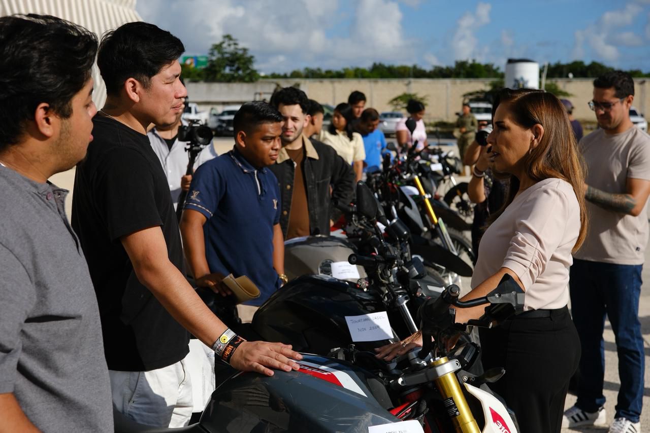 27 DE NOVIEMBRE DEL 2025 – LOCAL. En un evento realizado en las instalaciones del C5 de Cancún, la gobernadora Mara Lezama Espinosa encabezó la entrega de 16 motocicletas recuperadas a sus legítimos dueños. Esta acción es parte de un esfuerzo coordinado y continuo para combatir el robo de unidades y reforzar la seguridad en beneficio de todas las familias quintanarroenses. La Gobernadora destacó que, a diferencia del pasado, donde la recuperación de vehículos era un proceso casi imposible y lleno de sufrimiento para las víctimas, hoy se ha convertido en una realidad gracias al trabajo conjunto de las corporaciones.
