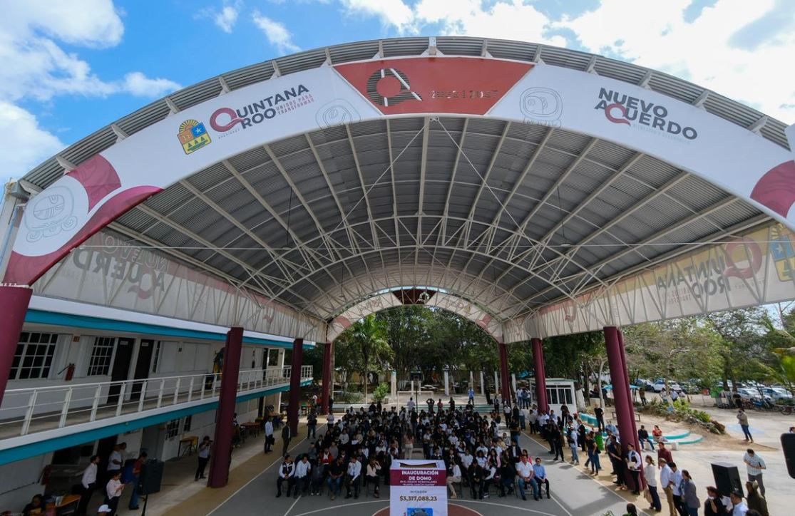 24 DE FEBRERO DEL 2026 – LOCAL. La gobernadora de Quintana Roo, Mara Lezama Espinosa, entregó oficialmente un nuevo domo en el Colegio de Bachilleres «Plantel Cancún Cuatro», una obra que la comunidad estudiantil esperó por más de una década y media. Durante la inauguración, la mandataria estatal resaltó que las juventudes tienen el derecho de recibir formación académica en espacios dignos y de calidad. Esta acción forma parte de un compromiso por mejorar la obra pública educativa en la entidad, garantizando que los estudiantes cuenten con aulas y laboratorios equipados para desarrollar sus talentos.