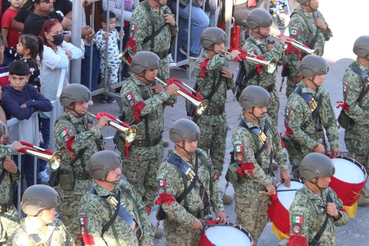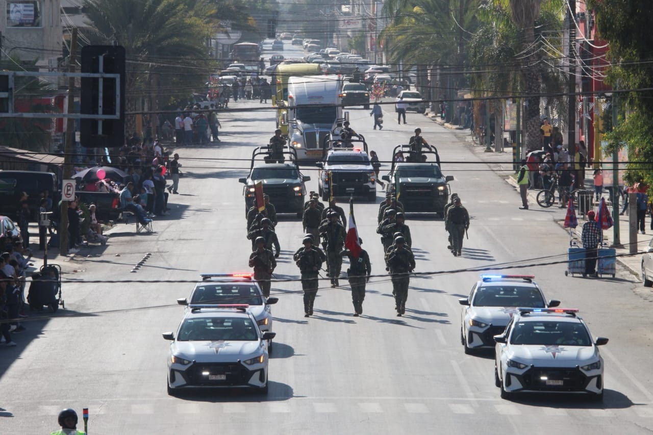 El desfile conmemorativo contó con la notable presencia de 10 dependencias pertenecientes a los tres niveles de gobierno. Además, marcharon efectivos del Ejército Mexicano y de la Guardia Nacional, cuya participación fue muy aplaudida por los espectadores. A ellos se sumaron los heroicos Bomberos de la ciudad, elementos de Seguridad Pública Municipal y personal de la Jurisdicción Sanitaria número 2, mostrando la unidad de las instituciones.