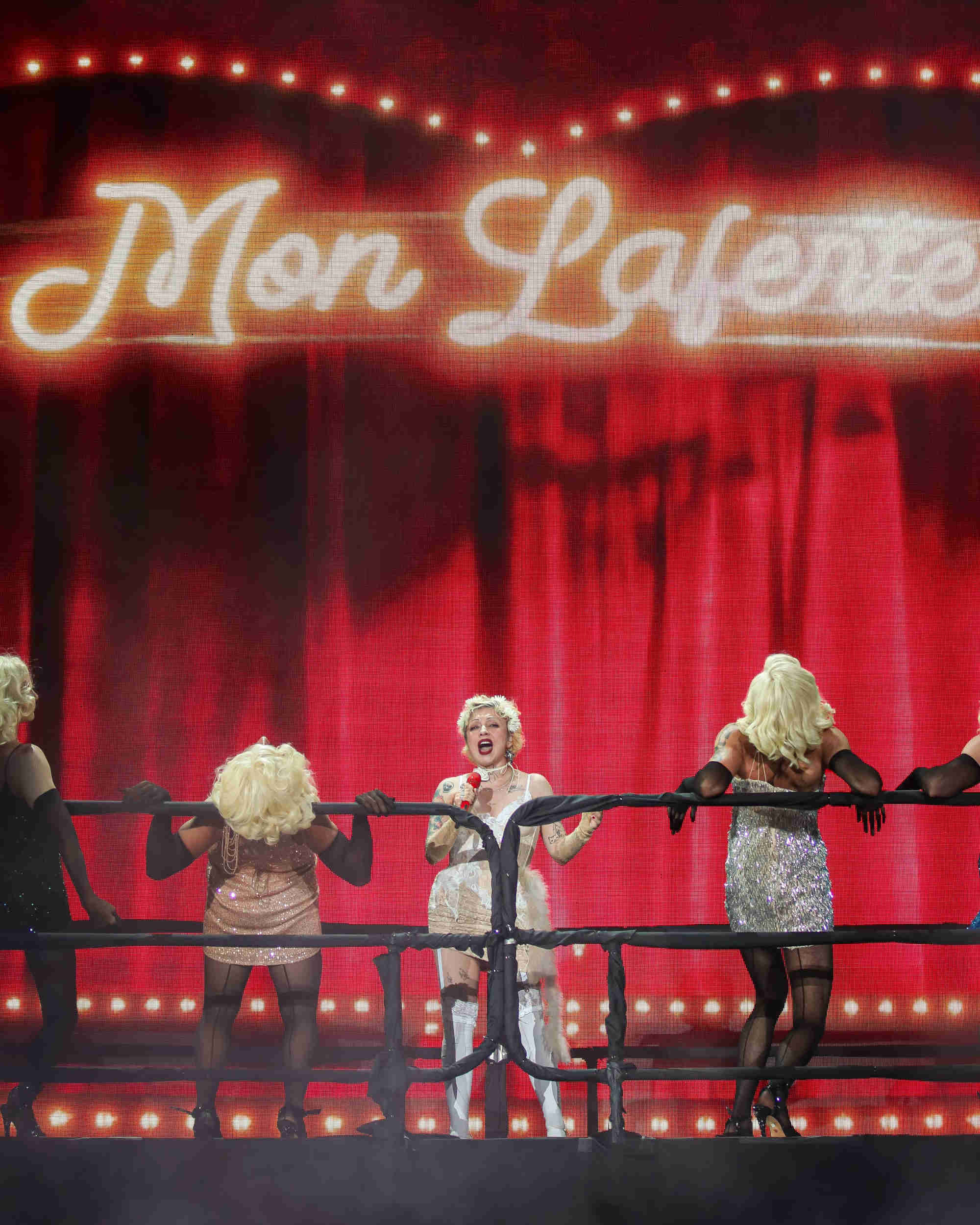 Mon tuvo como apoyo a un trío de metales además de la clásica banda, y en este show trae muchos bailarines que también cantan, en lo que quizás sea su show más ambicioso hasta ahora.
