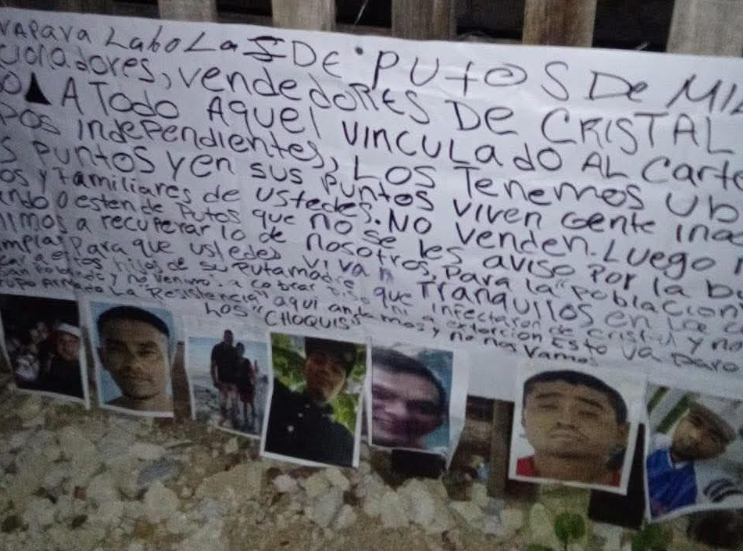Narcomanta «Exhibe» a Extorsionadores y Vendedores de Droga en Cancún