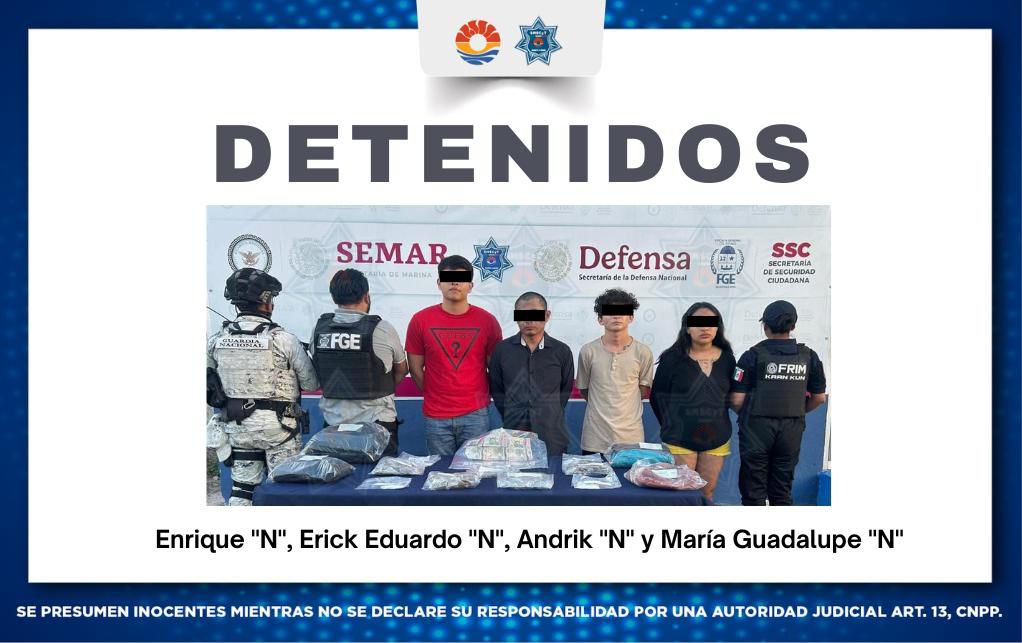 En una acción contundente contra la delincuencia, las fuerzas de seguridad que integran el operativo «Blindaje Cancún» lograron la captura de cuatro personas presuntamente dedicadas a la venta de sustancias ilícitas. La intervención fue posible gracias a la estrecha colaboración entre la Policía Cancún, la Guardia Nacional y la Fiscalía General del Estado (FGE). Este esfuerzo conjunto tiene como prioridad limpiar las zonas habitacionales de actividades relacionadas con el narcomenudeo, respondiendo a las demandas de mayor seguridad por parte de los vecinos de la zona centro.