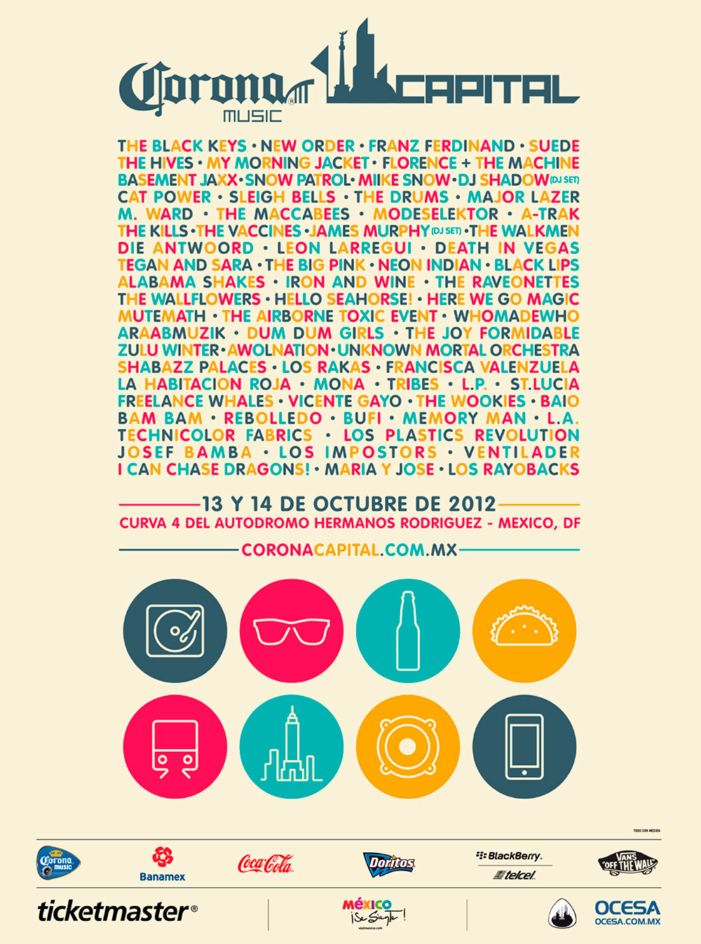 El cartel lo conformaron bandas como The Black Keys, Franz Ferdinand, Suede, Florence + The Machine, The Hives, Snow Patrol, The Maccabees, The Drums y Basement Jaxx, solo por mencionar algunos. Sin embargo, uno de los actos que de plano nos tomó por sorpresa fue New Order, pues sería su debut en nuestro país.