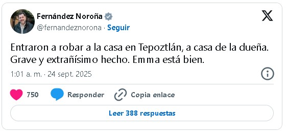 El senador de Morena, Gerardo Fernández Noroña, denunció que su casa en Tepoztlán, Morelos, fue víctima de un robo mientras él se encontraba en la Ciudad de México. A través de sus redes sociales, calificó el suceso como “grave y extrañísimo”, aunque no ofreció detalles sobre la magnitud del hurto. La vivienda es compartida con la dueña original del inmueble, situación que ha generado polémica desde que se incluyó en su declaración patrimonial.