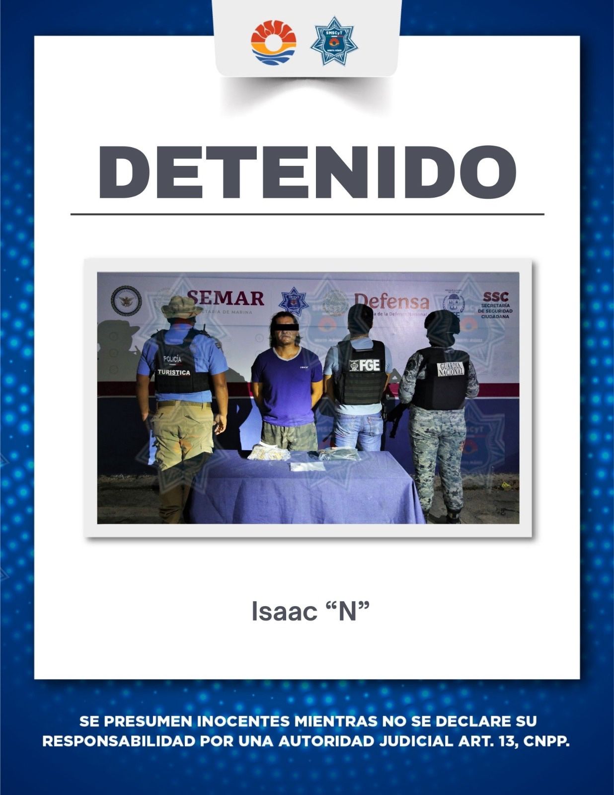 El detenido fue identificado como Isaac “N”, de 27 años de edad, quien fue informado de sus derechos de manera inmediata tras el hallazgo de la mercancía. Posteriormente, fue trasladado ante las oficinas de la Fiscalía General del Estado para determinar su situación jurídica. La eficacia del Operativo Blindaje Cancún permitió que el presunto implicado en delitos contra la salud fuera procesado bajo los lineamientos legales correspondientes por el delito de narcomenudeo.