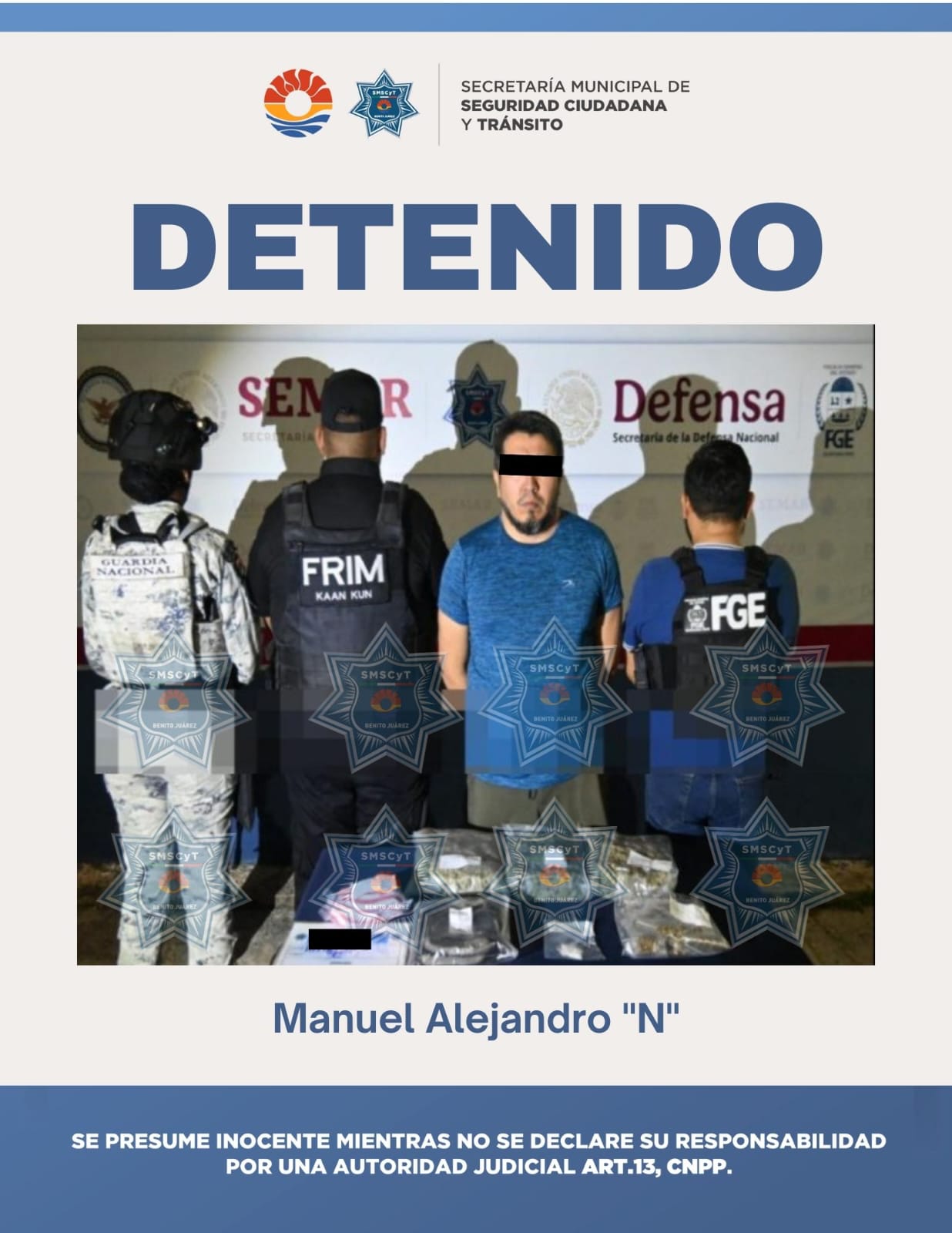 En una acción conjunta bajo el operativo estratégico Blindaje Cancún, las autoridades locales lograron la captura de un sujeto implicado en actividades ilícitas. Elementos de la Secretaría Municipal de Seguridad Ciudadana y Tránsito, en coordinación con la Fiscalía General del Estado y la Guardia Nacional, encabezaron esta detención. El operativo busca reforzar la vigilancia en las zonas con mayor afluencia para garantizar la paz de los ciudadanos. Durante los recorridos de rutina, los agentes detectaron movimientos sospechosos que llevaron al aseguramiento del presunto responsable.