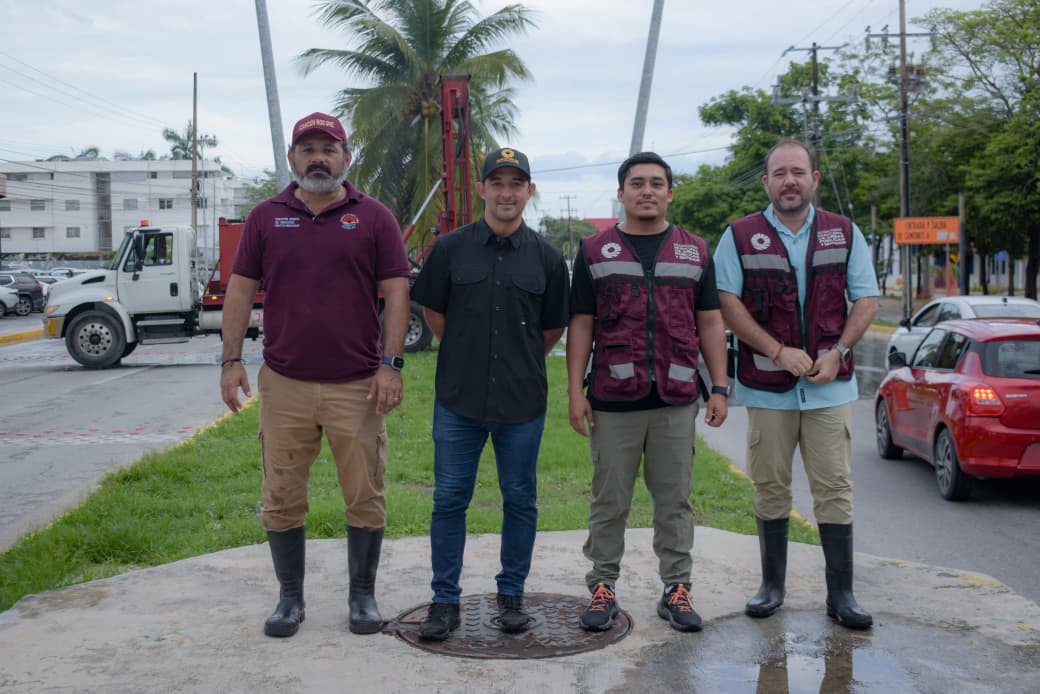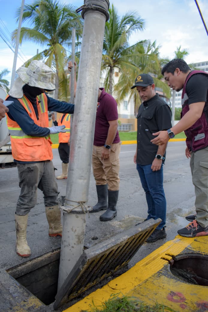 1 OCTUBRE 2025-Cancún, Q. Roo. – Ante el pronóstico de lluvias para las próximas 72 horas, el Ayuntamiento de Benito Juárez reforzó los trabajos preventivos en diversos puntos estratégicos de la ciudad. Por instrucciones de la Presidenta Municipal, Ana Paty Peralta, el secretario general, Pablo Gutiérrez Fernández, y el director de Servicios Públicos, Antonio Chambé, encabezaron las labores de mantenimiento y desazolve de pozos de absorción, así como la limpieza de rejillas y captadores pluviales, con el objetivo de prevenir encharcamientos y mejorar el flujo de agua en las vialidades.