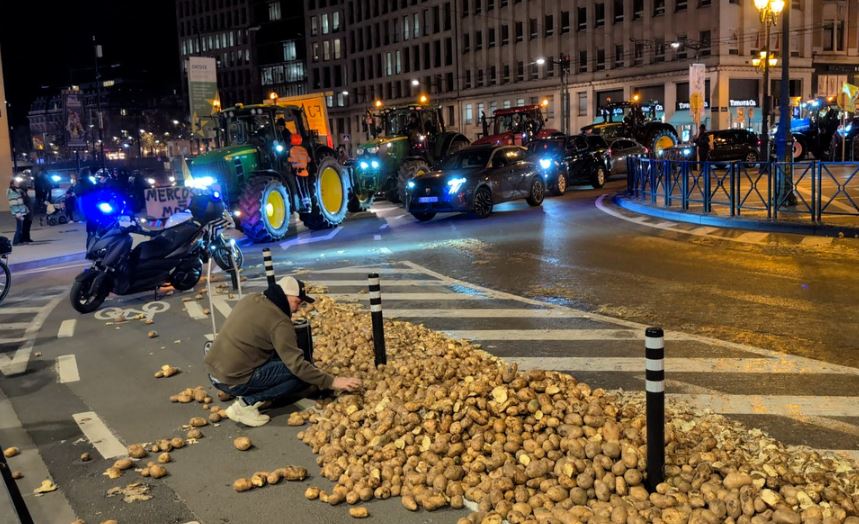 Durante los disturbios, los agricultores arrojaron sacos de papas hacia las inmediaciones del Parlamento Europeo como señal de inconformidad. Posteriormente, las papas antidisturbios quedaron esparcidas en la zona, lo que dio pie a que algunos residentes decidieran recogerlas, transformando la protesta en una escena inesperada y llamativa.