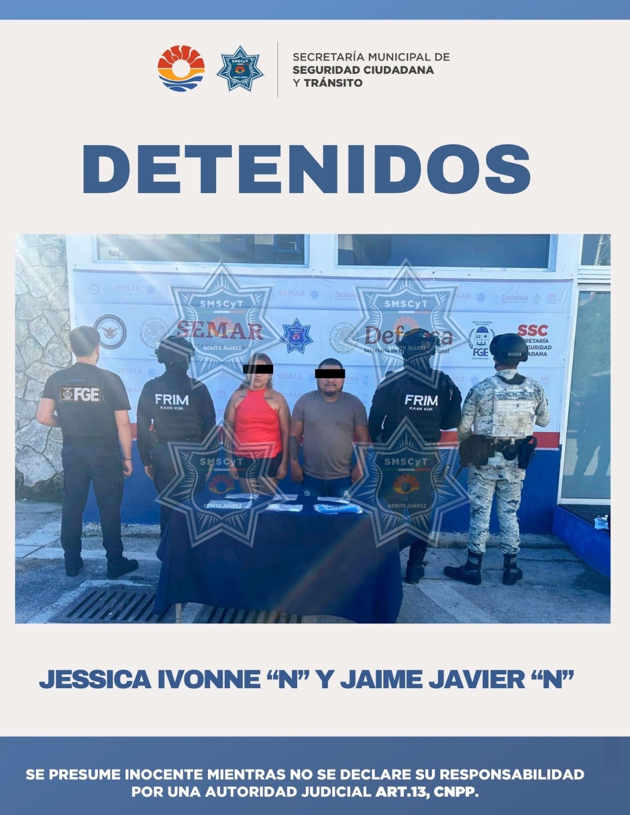 Los detenidos fueron identificados como Jessica Ivonne “N”, de 32 años de edad, y Jaime Javier “N”, de 35 años. La acción de seguridad se logró sin incidentes mayores, demostrando la efectividad de la coordinación entre las distintas corporaciones que participan en el Operativo Blindaje Cancún. Este tipo de detención es crucial para desmantelar los puntos de venta de droga que operan a pequeña escala dentro de las colonias.