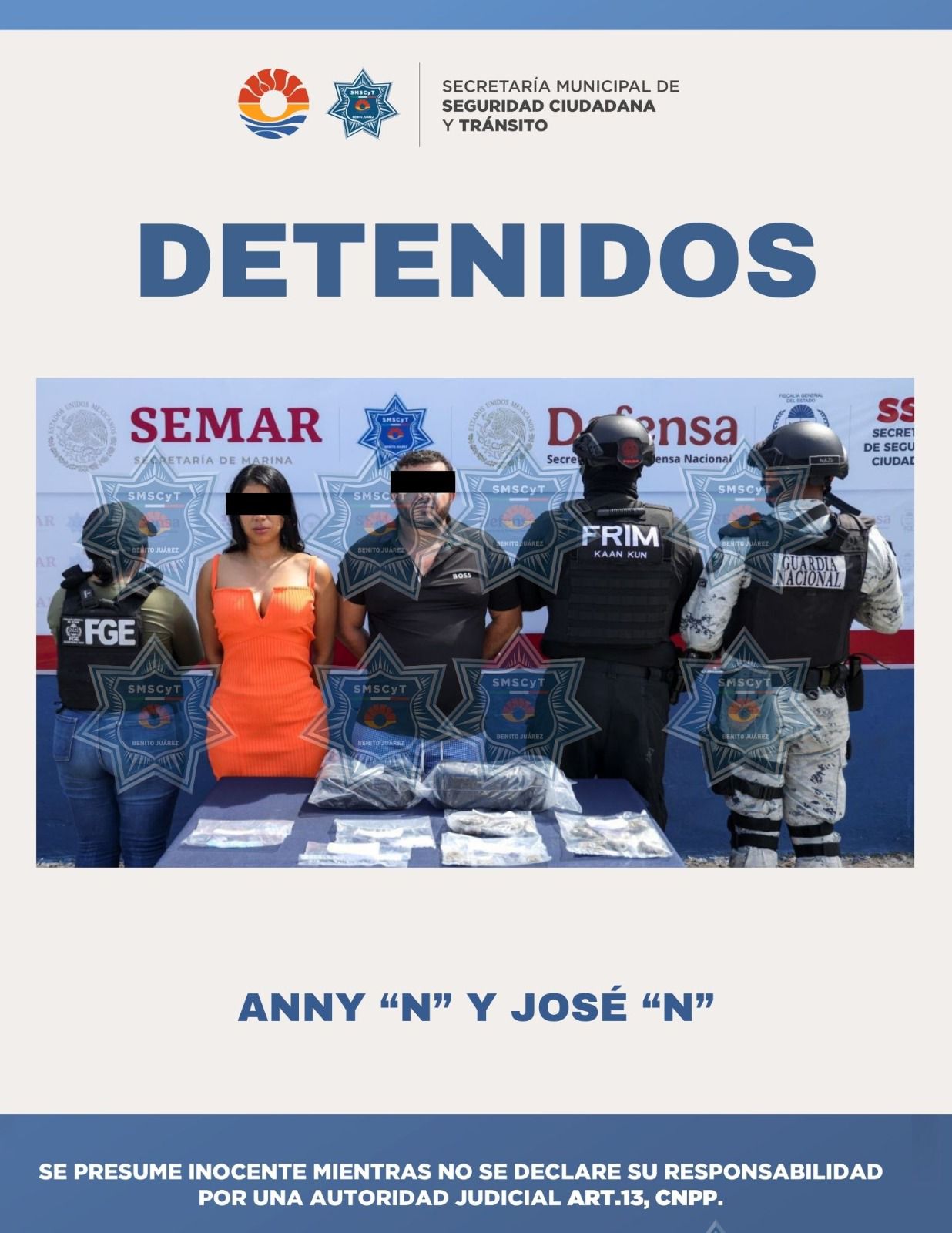 9 DE OCTUBRE DEL 2025 – LOCAL. En un operativo conjunto, las autoridades de seguridad en Cancún asestaron un nuevo golpe al narcomenudeo al detener a una mujer y un hombre que, presuntamente, se dedicaban a la venta de drogas. Esta acción se enmarca dentro del programa «Blindaje Cancún», que busca reforzar la vigilancia y la prevención de delitos en zonas urbanas de alta incidencia. La coordinación entre la Guardia Nacional, la Fiscalía General del Estado (FGE) y la Secretaría Municipal de Seguridad Ciudadana y Tránsito (SMSCyT) de Benito Juárez fue clave para lograr esta importante detención en flagrancia.