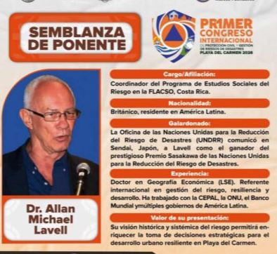 En total, 11 ponentes nacionales e internacionales integran el programa académico y técnico del Congreso. Se trata de perfiles reconocidos por su experiencia en el diseño de estrategias de protección civil, manejo de desastres naturales, reducción de riesgos y coordinación interinstitucional, tanto en México como en otros países.