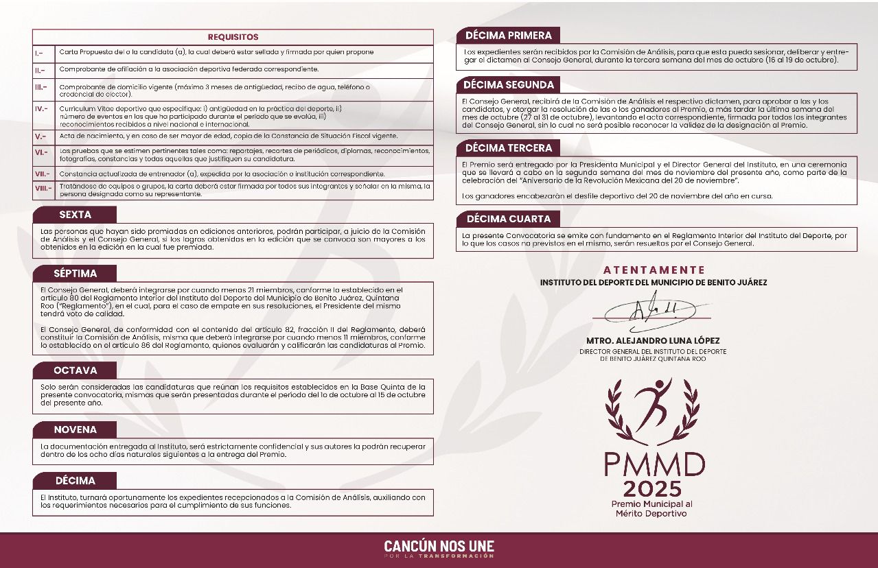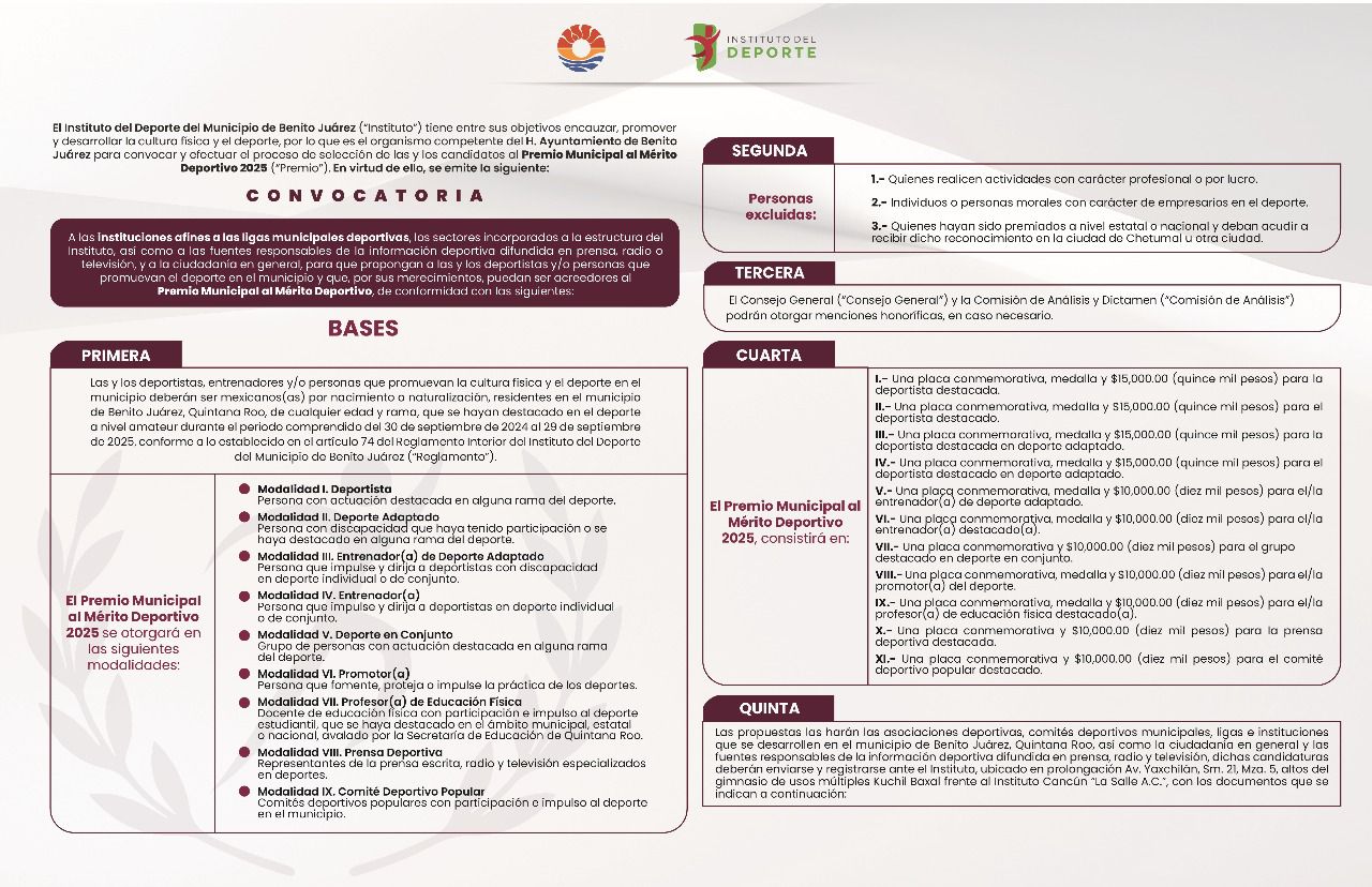 «Premio Municipal al Mérito Deportivo 2025 abre convocatoria en Benito Juárez»
