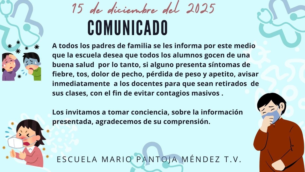 El centro educativo Mario Pantoja Méndez, ubicado en la Región 223, ha emitido un llamado directo a los padres de familia de la comunidad escolar para que permanezcan vigilantes. Si bien no se ha emitido un comunicado oficial por parte de las autoridades de salud, la escuela ha optado por señalar cuáles pueden ser los síntomas de la enfermedad respiratoria, buscando prevenir un brote mayor.
